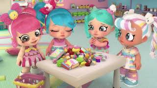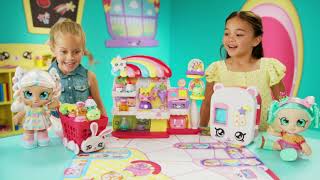 Chegaram as Kindi Kids! Amorosas meninas que andam no jardim de infância e que adoram o mundo encantado dos arco-íris! É no Supermercado que fazem as suas deliciosas compras! Com caixa registadora, máquina de registar, cestos de compras, balança e arca de gelo vai ser super divertido! Vem com 2 shopkins exclusivos e um tapete Kindi Kids para brincares!